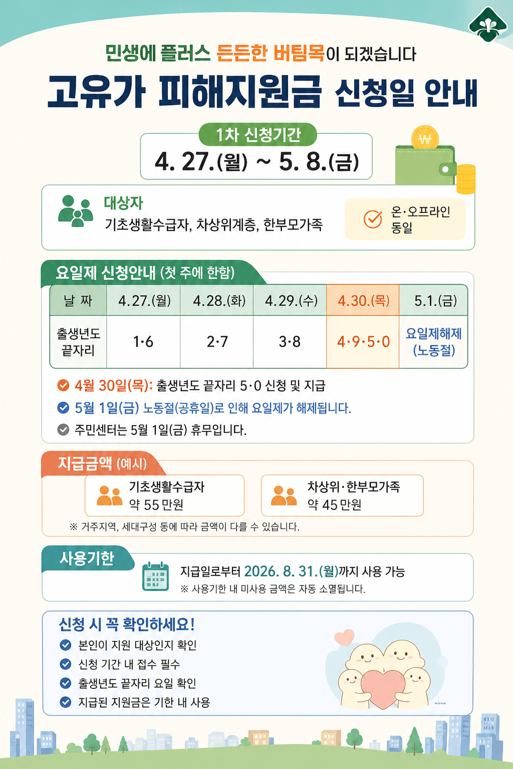 👉 “신청 시기 + 대상 조건 + 사용 기한”까지 모두 확인해야 제대로 받을 수 있는 지원금입니다.