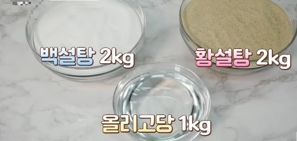 매실 5kg이라면 설탕과 올리고당합이 5kg을 준비해야 하죠.