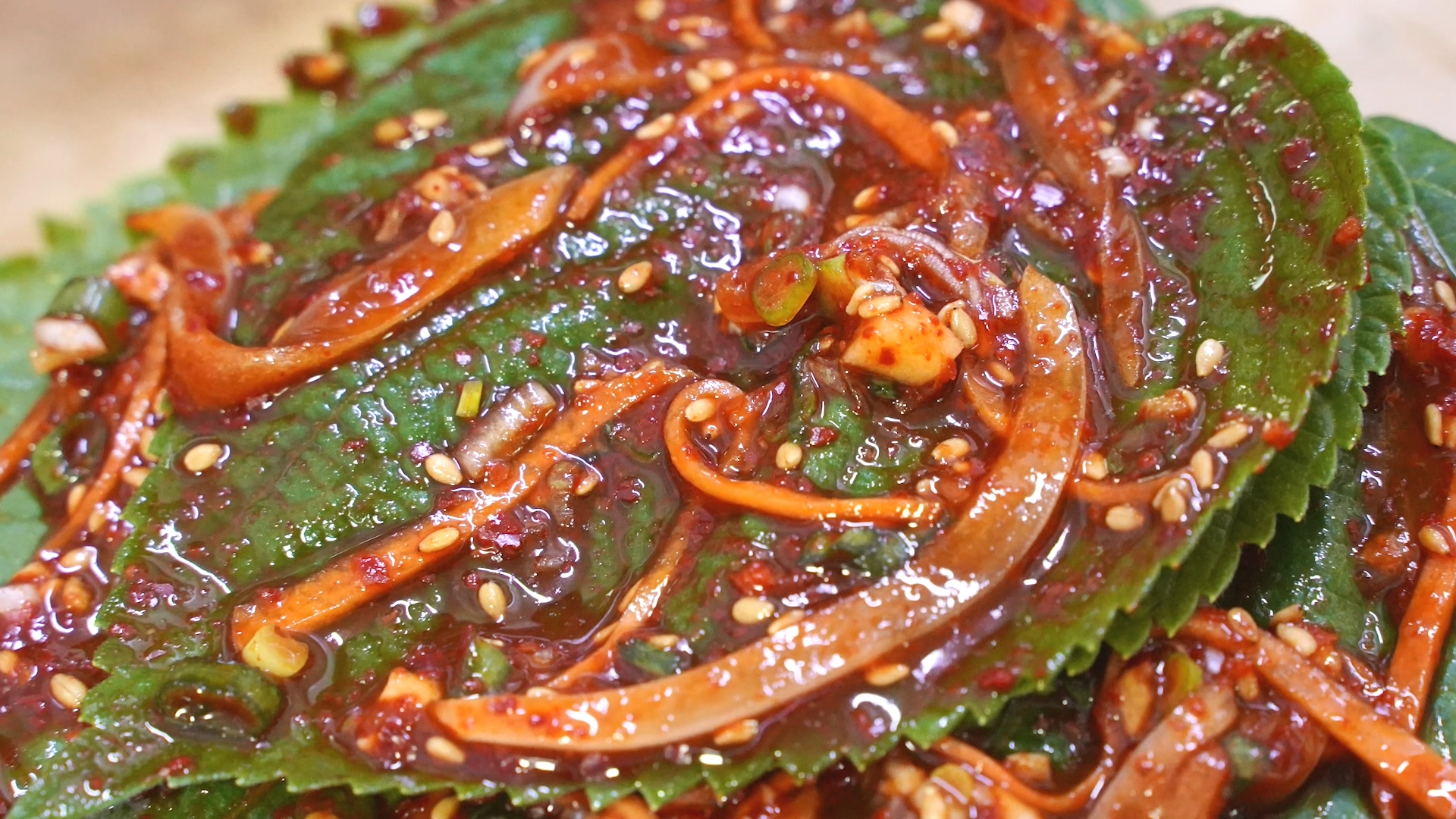 이미 처음 접하는 외국인들에게는 한국의 고수 정도로 여겨지지 않을 까 싶다. 이렇게도 독특한 깻잎은 과연 언제 먹어야 좋을까? 하루 날 잡아 놓고 놀러가 숯불에 삼겹살을 구워 먹으며 기분이라도 낼까? 아니다 반대로 마음 한 구석이 불안한 날 기분이 이리저리 날뛰는 날에 깻잎을 딱 추천한다.