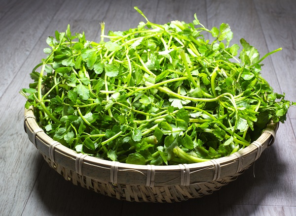 미나리는 비타민과 무기질이 풍부하게 함유된 알칼리성 식품으로 고지방 식단으로 인해 산성으로 변한 체질을 중화하는 데 효과가 있다.