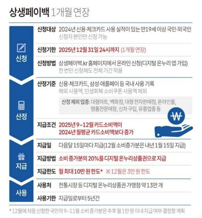 - 상생페이백은 정부가 소비 진작과 소상공인 지원을 위해 도입한 제도입니다. 2025년 9월부터 12월까지, 카드 사용액이 지난해 월평균보다 증가한 경우 증가분의 20%를 환급해 줍니다.