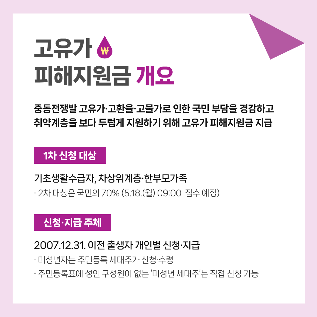 ※ 실제 고유가 지원금은 이보다 완화된 기준(하위 70%) 적용