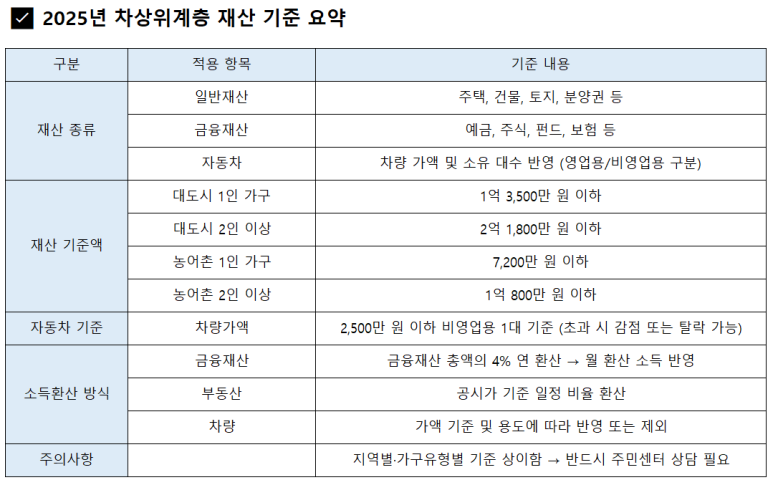 - 소득뿐 아니라 재산도 함께 평가