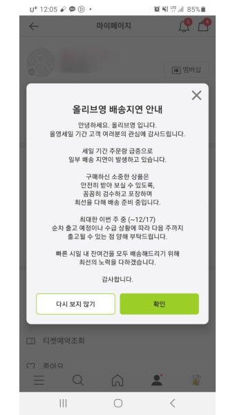 ✔ 이 경우 올리브영 앱 또는 홈페이지 1:1 문의를 이용하시면 됩니다.