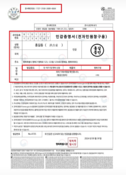 인감증명서는 도장을 주소지 관할 행정 복지센터에 미리 등록해 놓고 필요한 경우 이 서류를 공신력 있는 정부에서 발급하여 도장이 본인이 등록한 인감임을 증명해 주는 서류입니다.