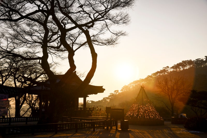 전등사에서의 일출은 신비로운 분위기를 자아냅니다. 고요한 사찰의 풍경과 함께 떠오르는 해는 마음을 편안하게 해줍니다. 이곳은 조용히 명상을 하기에 좋은 장소입니다.